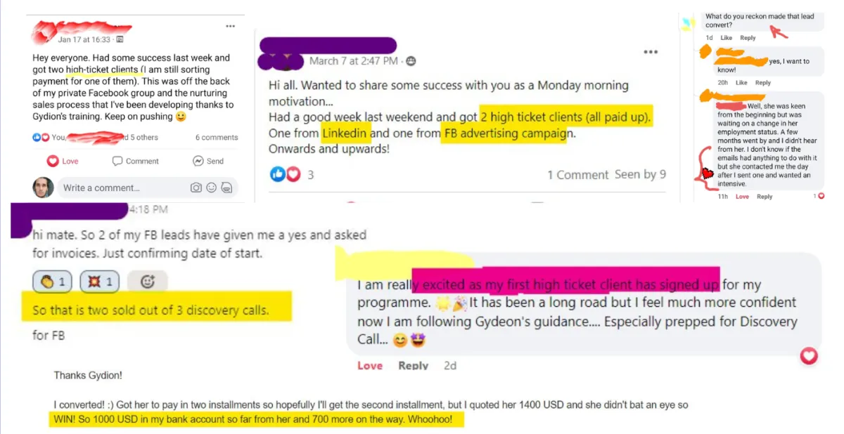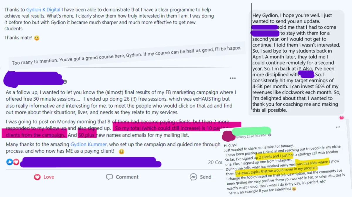 "I joined Gydion course for groups and that was excellent [...] Building a second and third group now" - Claire Ellis